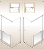 Screen height 900mm Right Handed screens Fixed panel Two Bi-Parting doors opening in and out L-shaped curtain rail, gliders & fixings Option XW supplied with corner blocks
